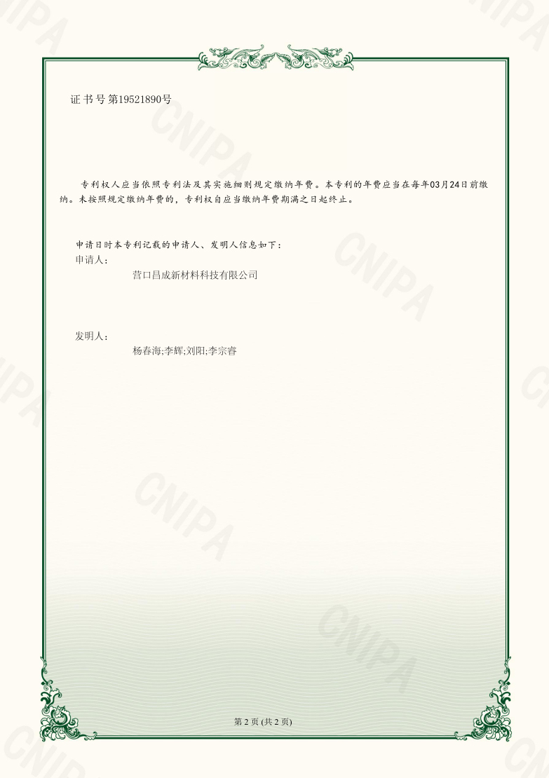 Copyright(C)2021,Yingkou Changcheng New Material Technology Co., Ltd. All Rights Reserved.